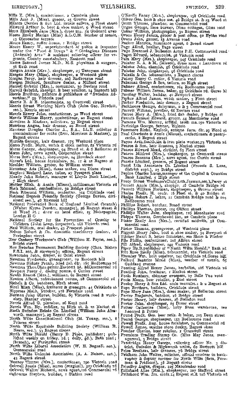 Page 219 Swindon; businesses from Mills to Pritchard.