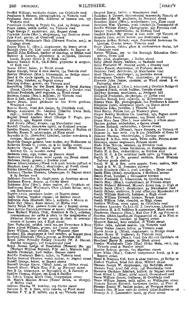 Page 220 Swindon; businesses from Proffitt to Strange.