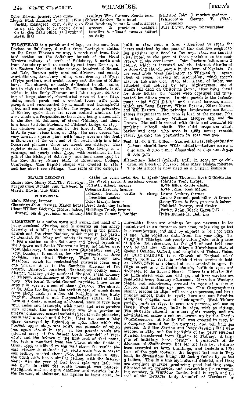 Page 224 Description and residents of North Tidworth, Tilshead, and Tisbury.
