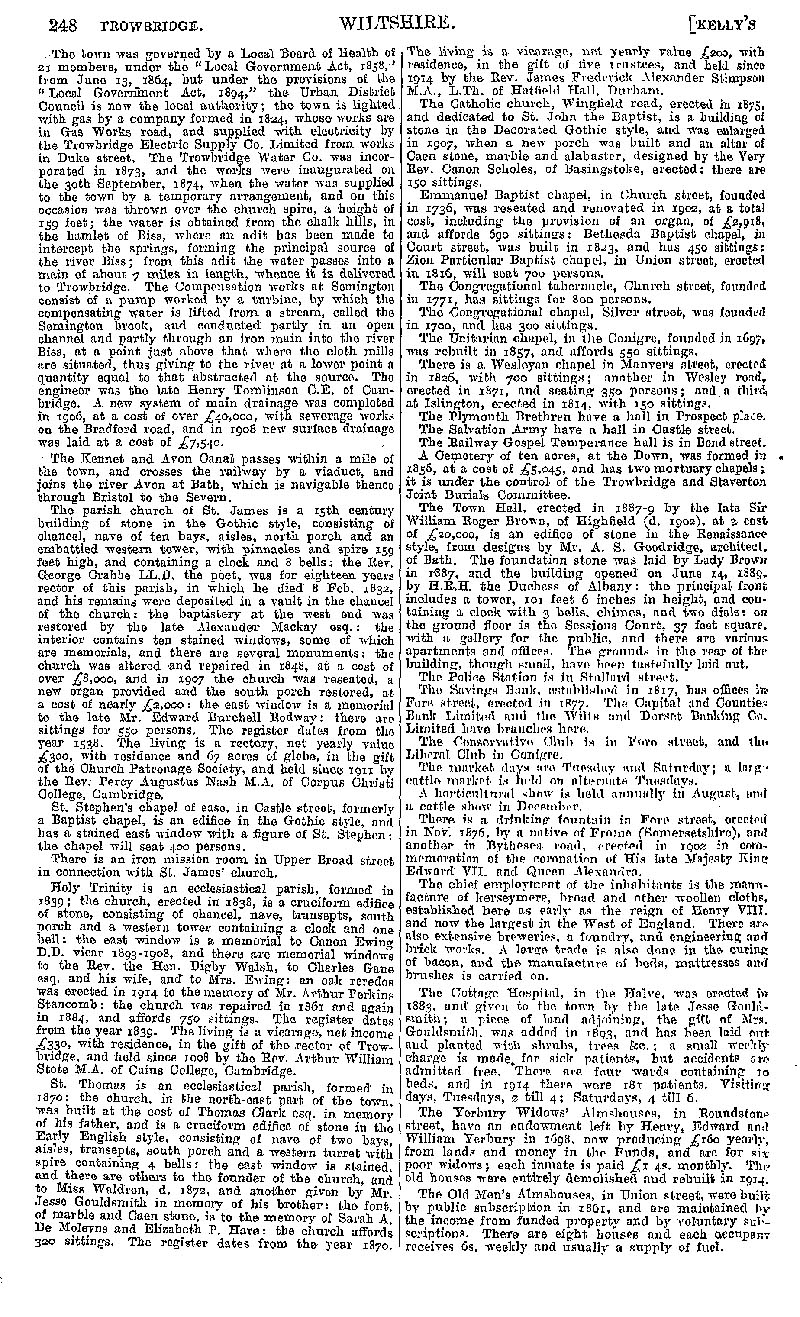 Page 228 Trowbridge; description, church of St.James, other churches and chapels, the town hall, public buildings, hospital and almshouses.