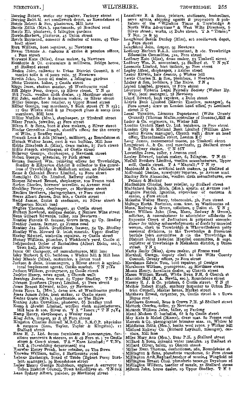 Page 235 Trowbridge; businesses from Harring to Milsom.