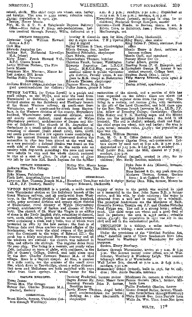 Page 239 Description and residents of Upavon, Upton Lovel, and Upton Scudamore.