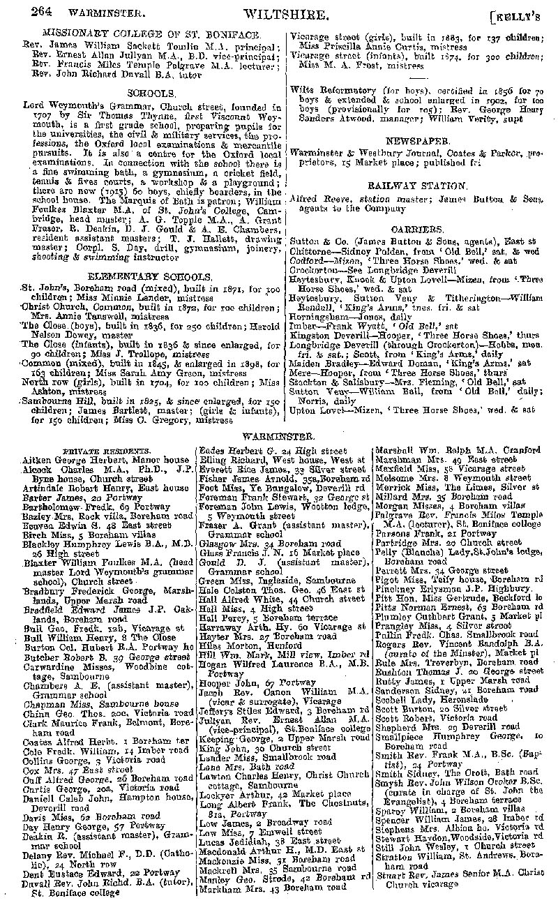 Page 244 Warminster, schools, newspaper, railway, carriers; private residents from Aitken to Stuart.