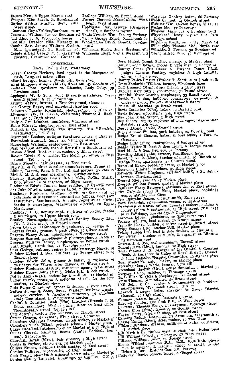 Page 245 Warminster, private residents from Stuart to Young, businesses from Aitken to Holloway.