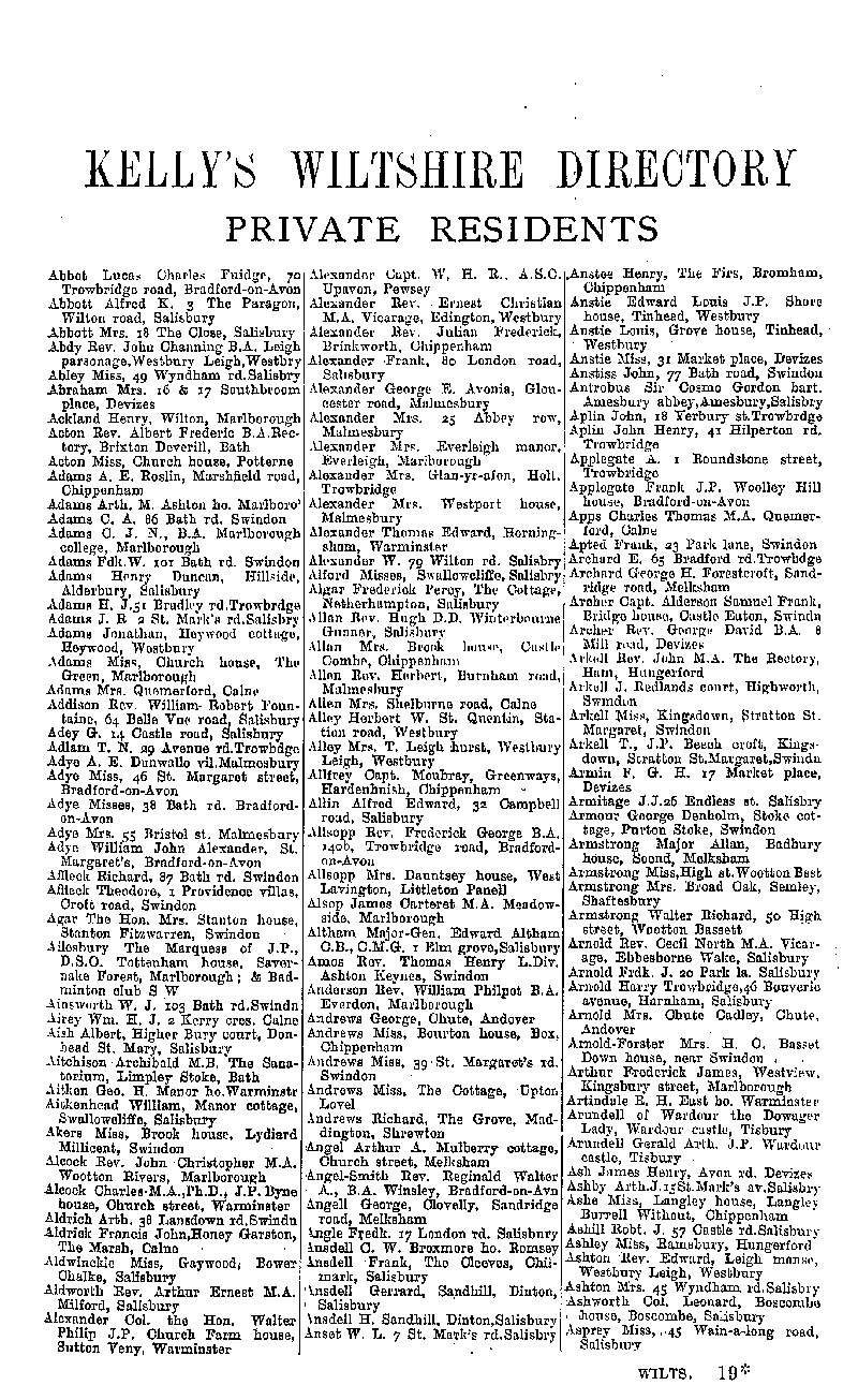 Page 1 Private residents of Wiltshire from Abbott to Asprey.