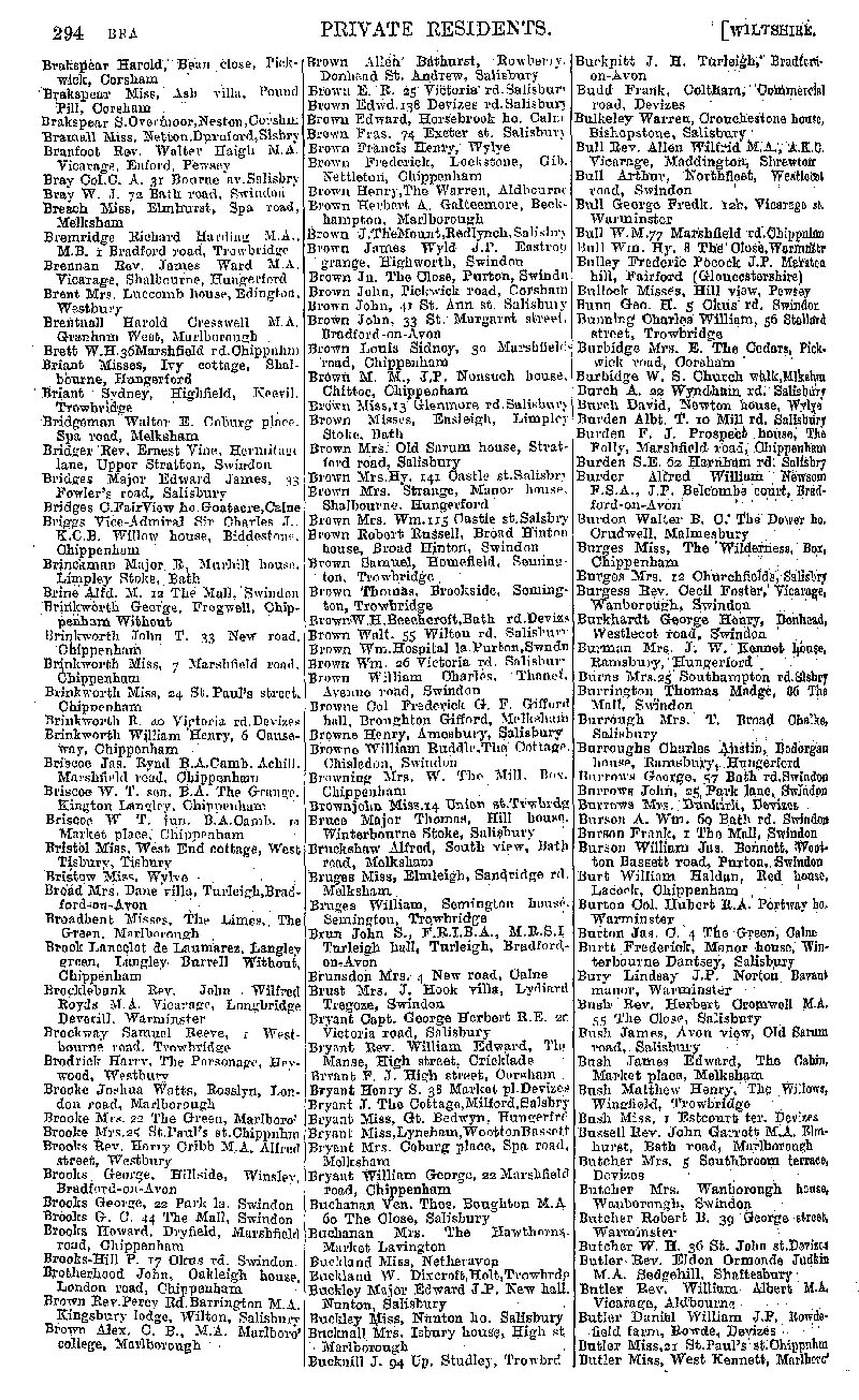 Page 4 Private residents of Wiltshire from Brakspear to Butler.