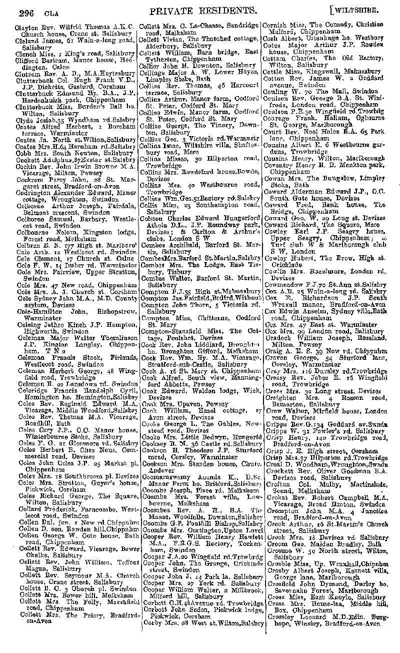 Page 6 Private residents of Wiltshire from Clayton to Crossley.