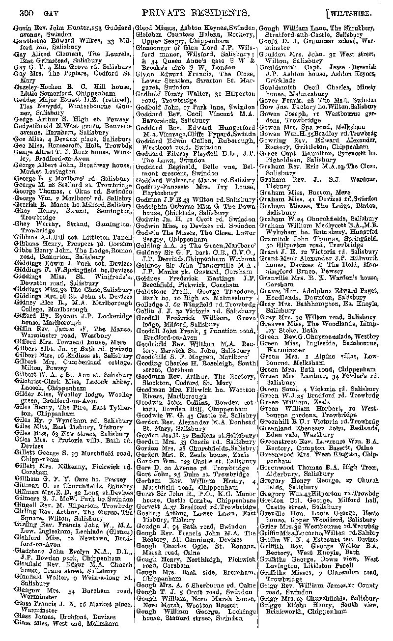 Page 10 Private residents of Wiltshire from Gavin to Griggs.