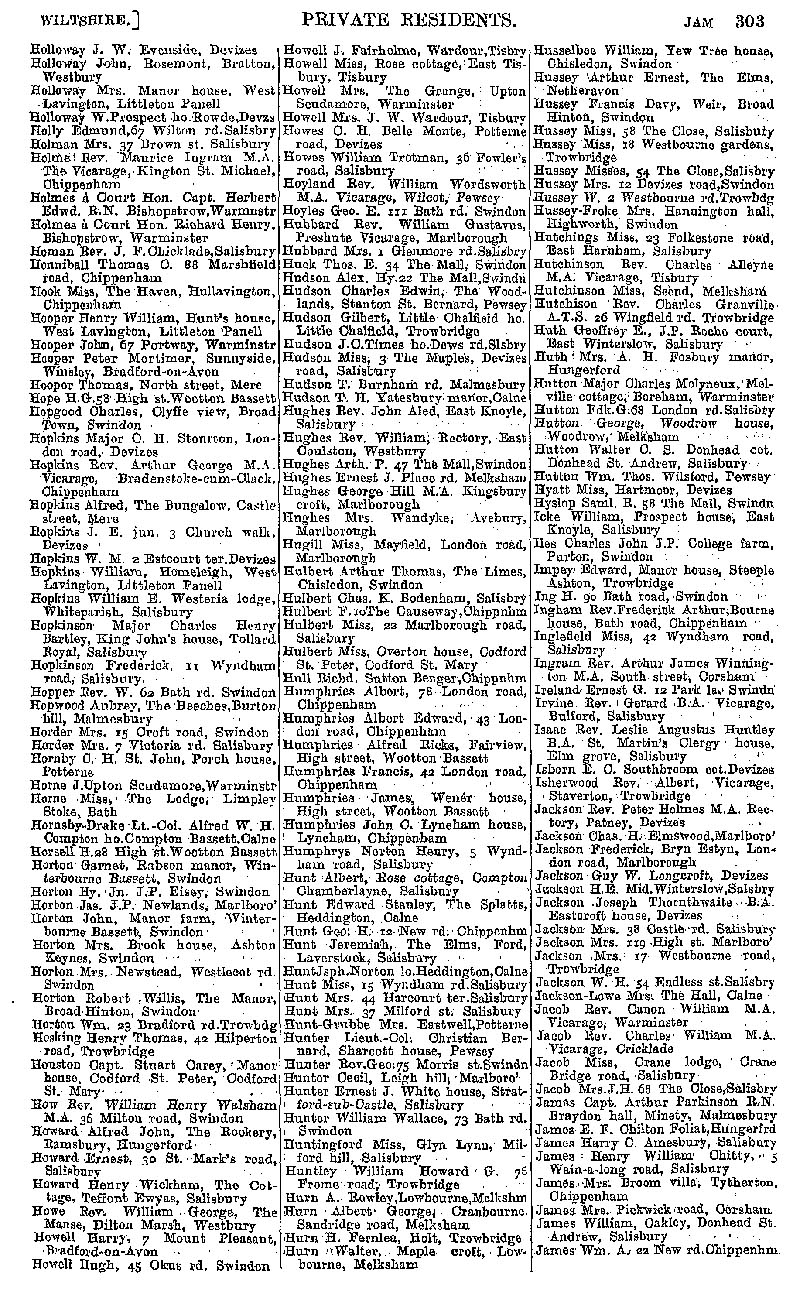 Page 13 Private residents of Wiltshire from Holloway to James.