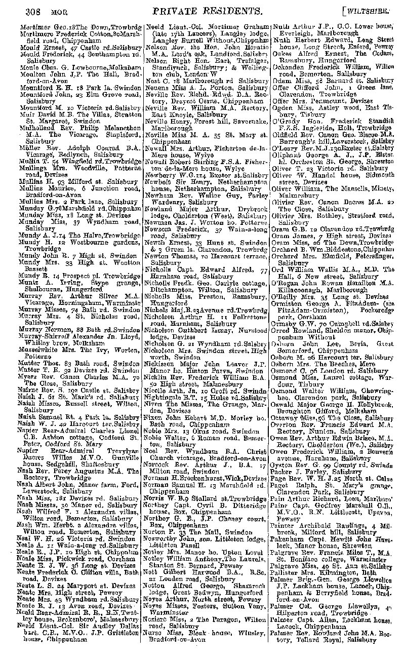 Page 18 Private residents of Wiltshire from Mortimer to Palmer.