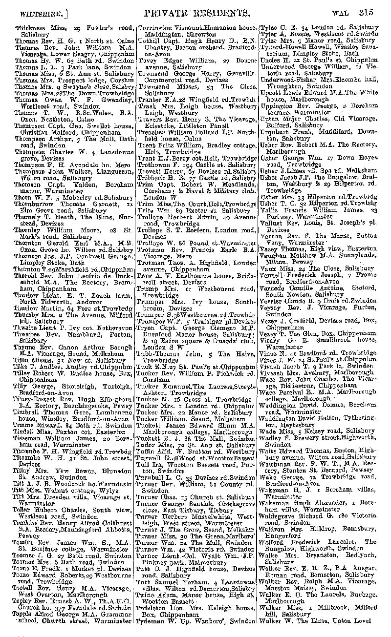 Page 25 Private residents of Wiltshire from Thickness to Walker.