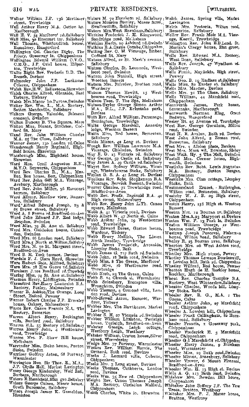 Page 26 Private residents of Wiltshire from Walker to Whitaker.