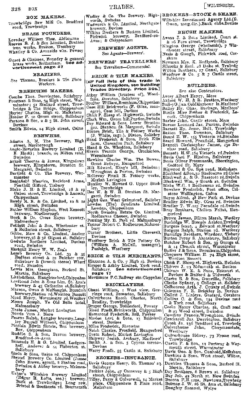 Page 38 Businesses by subject; box makers, brass founders, breches makers, brewers, brick & tile makers, bricklayers, brokers, brush makers, builders.