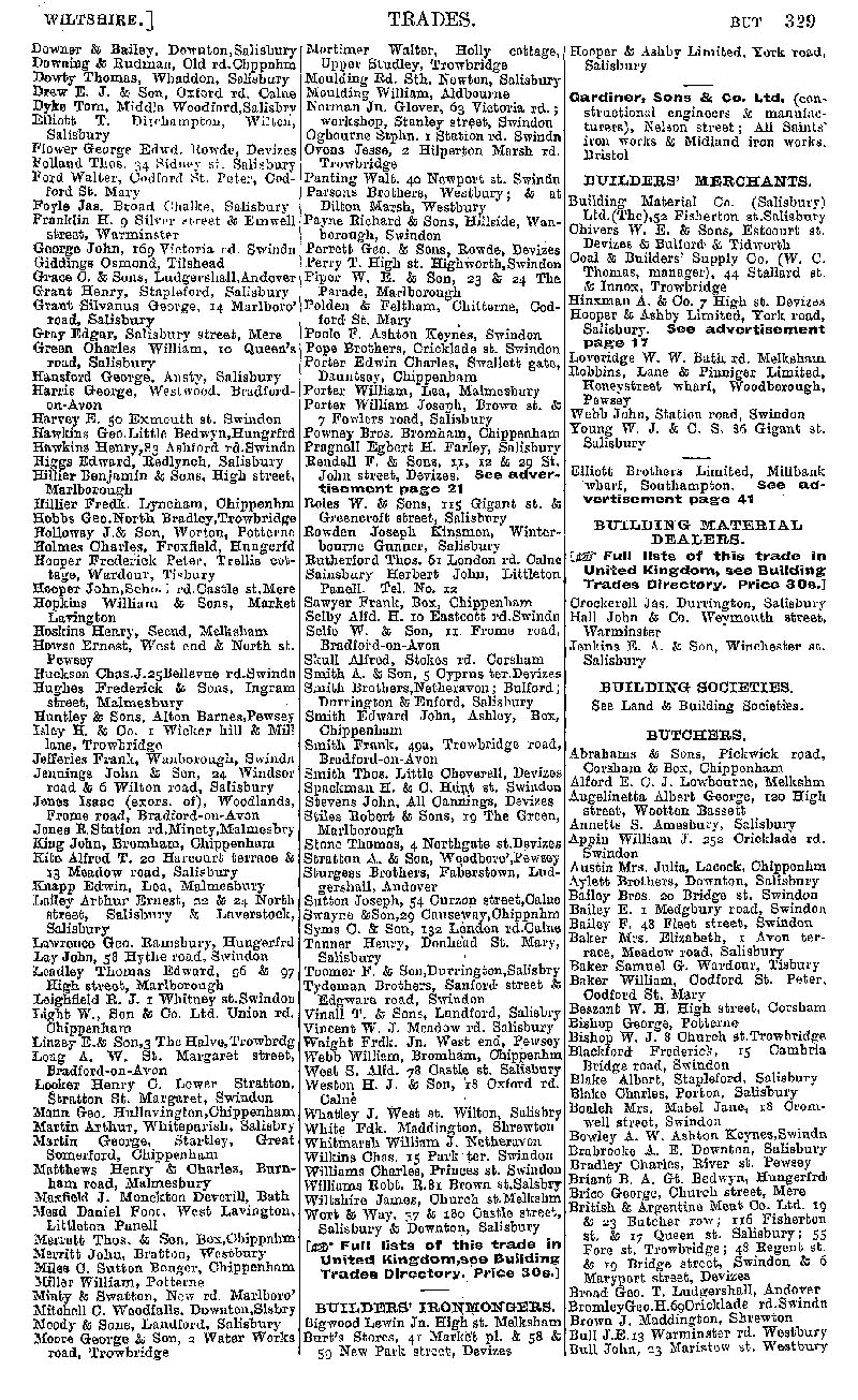 Page 39 Businesses by subject; builders, builders ironmongers & merchants, butchers.
