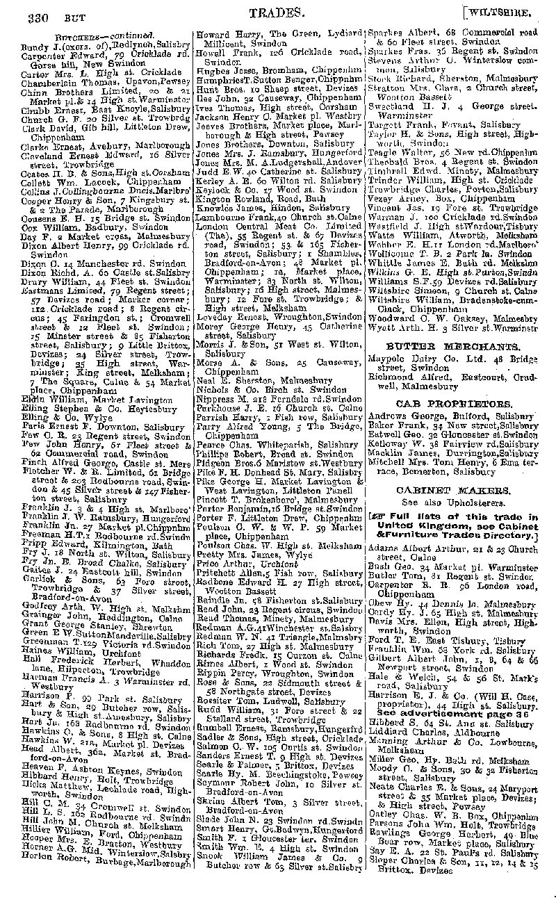 Page 40 Businesses by subject; butchers, butter merchants, cab proprietors, cabinet makers.