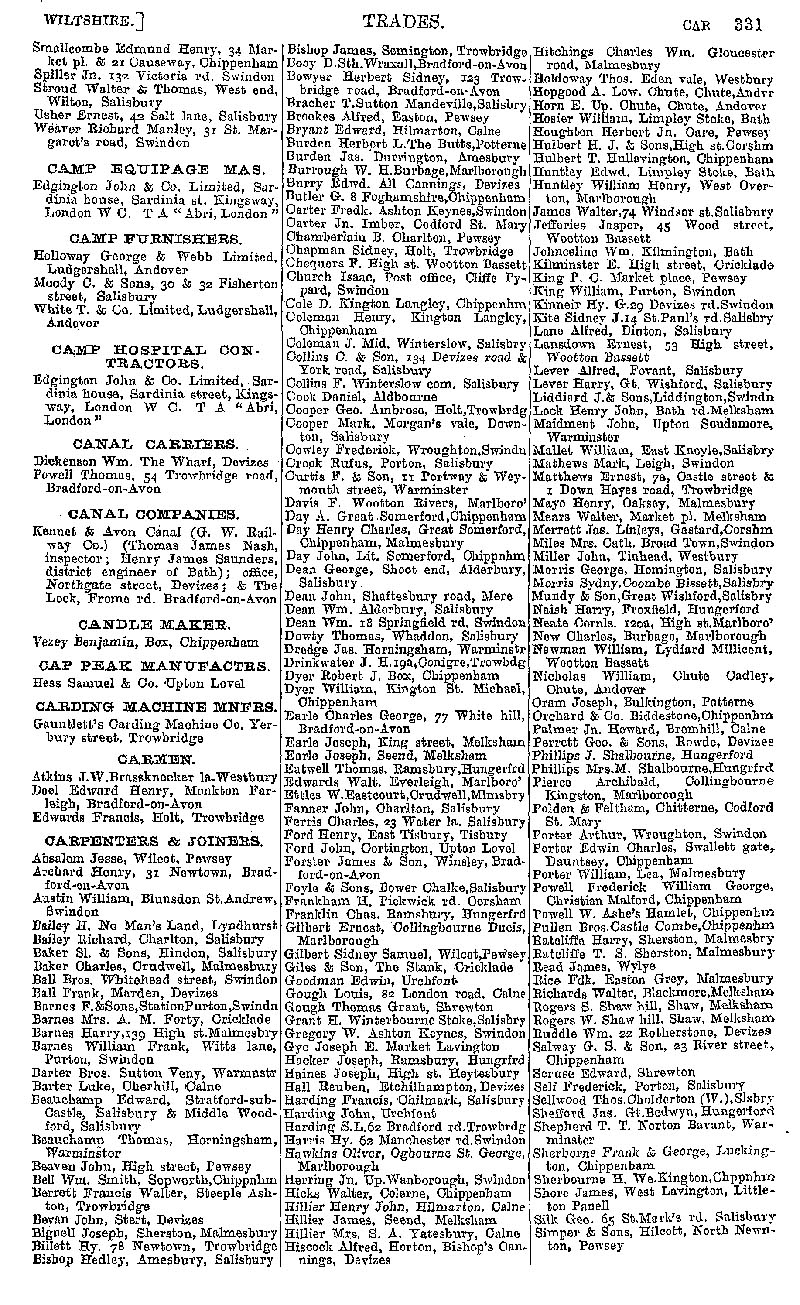Page 41 Businesses by subject; cabinet makers, camp furnishers, canal carriers and companies, candle maker, cap peak manufacturer, carding machine manufacturer, carmen, carpenters & joiners.