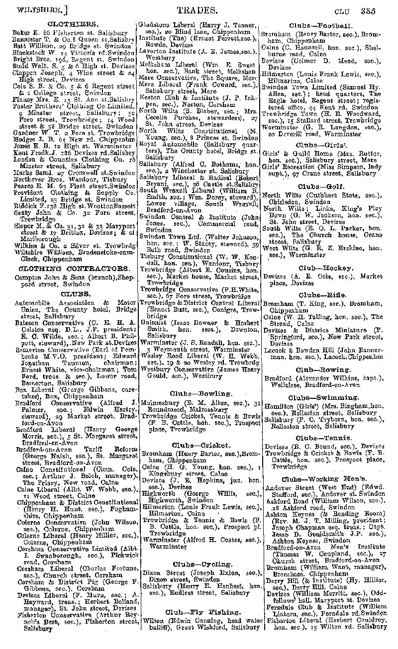 Page 45 Businesses by subject; clothiers, clothing contractors, clubs - sporting and social.