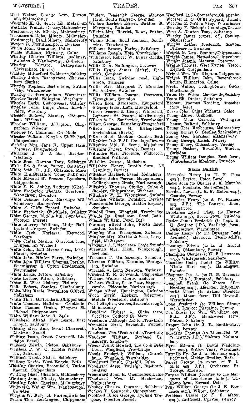 Page 67 Businesses by subject; farmers & farm bailiffs (West to Young), farm bailiffs (Alexander to Fribbens).