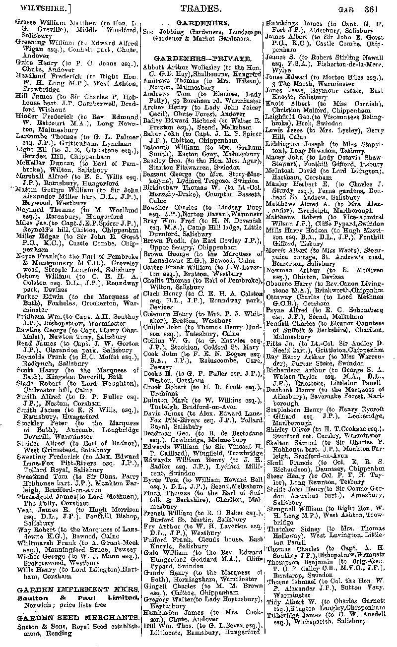 Page 71 Businesses by subject; game keepers, private gardeners.
