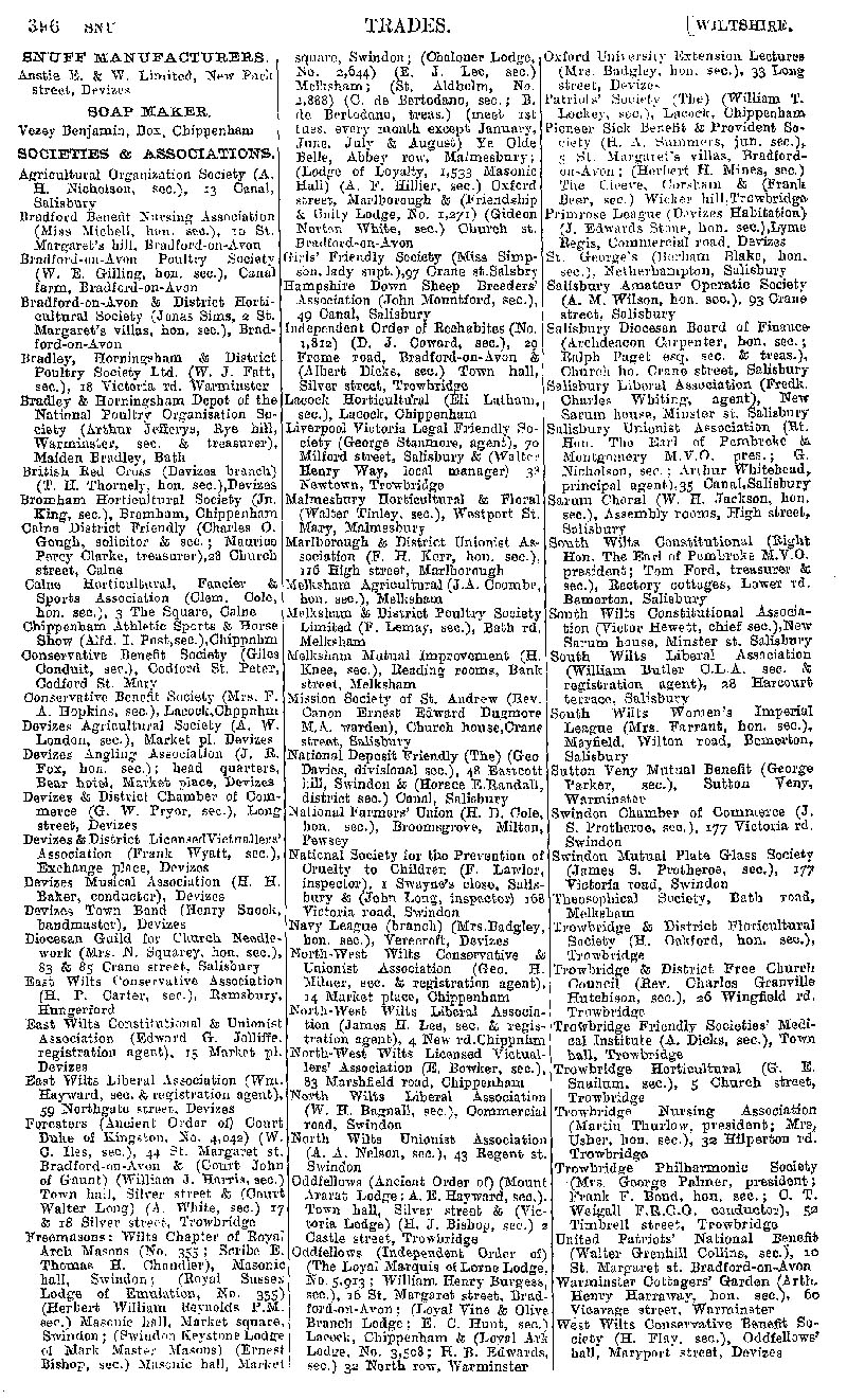Page 106 Businesses by subject; Snuff maker, soap maker, societies & associations.