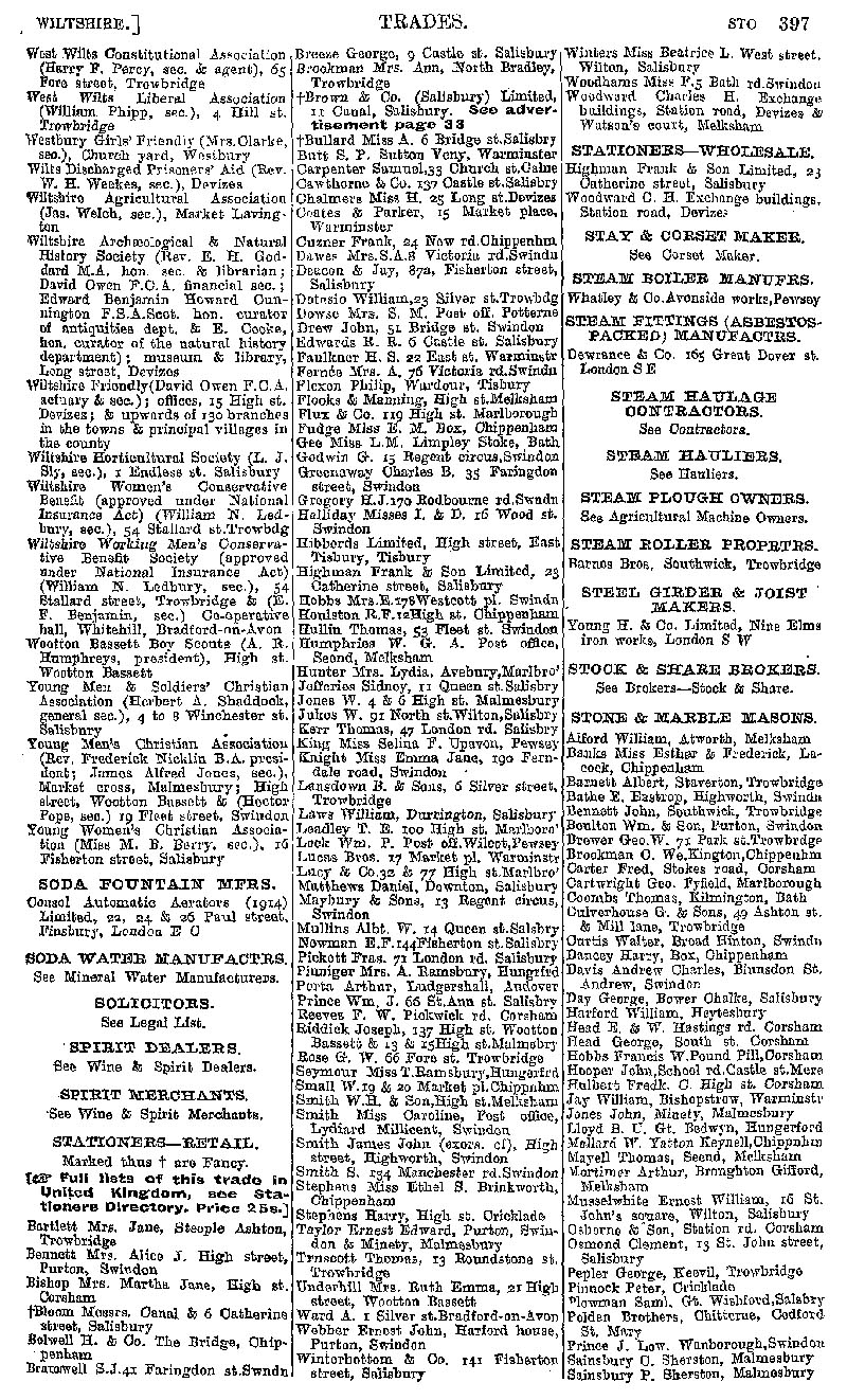 Page 107 Businesses by subject; societies & associations,stationers, staem boiler makers, stone & marble masons.
