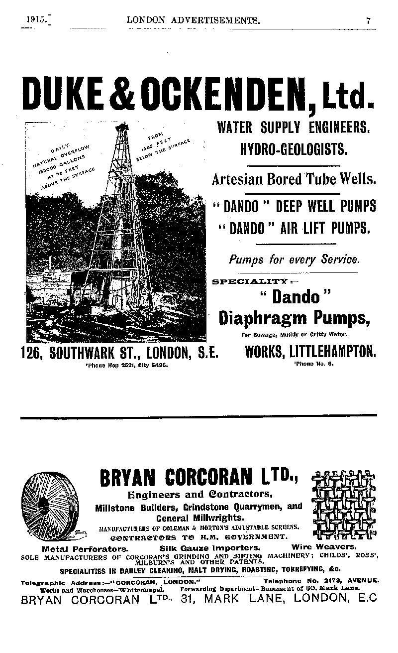 Page 7 Advertisements for Duke & Ockenden Ltd. and Bryan Corcoran Ltd.