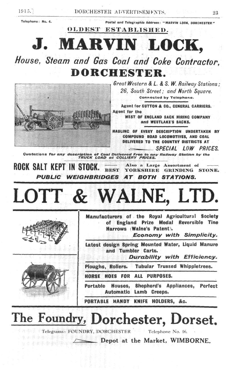 Page 23 Advertisements for J. Marvin Lock, Dorchester, and Lott & Walne, Dorchester.