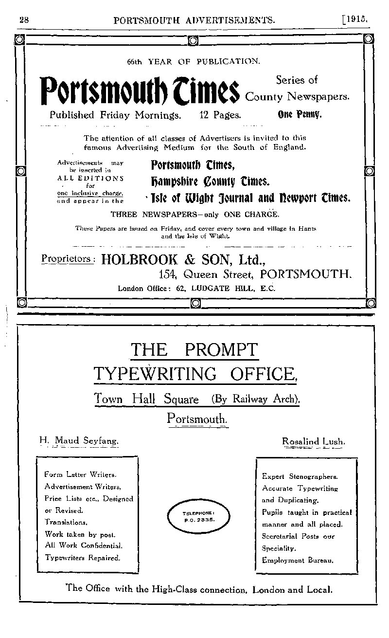Page 28 Advertisements for the Portsmouth Times, and The Prompt Typewriting Office, Portsmouth.