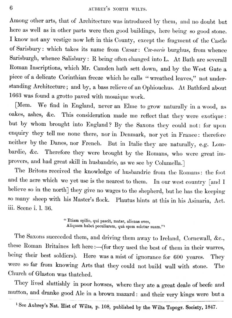 Page 21 John Aubrey's preface; Roman and Saxon Wiltshire.
