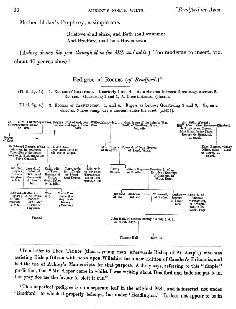 Page 4 History of Bradford on Avon, pedigree of Roger family.