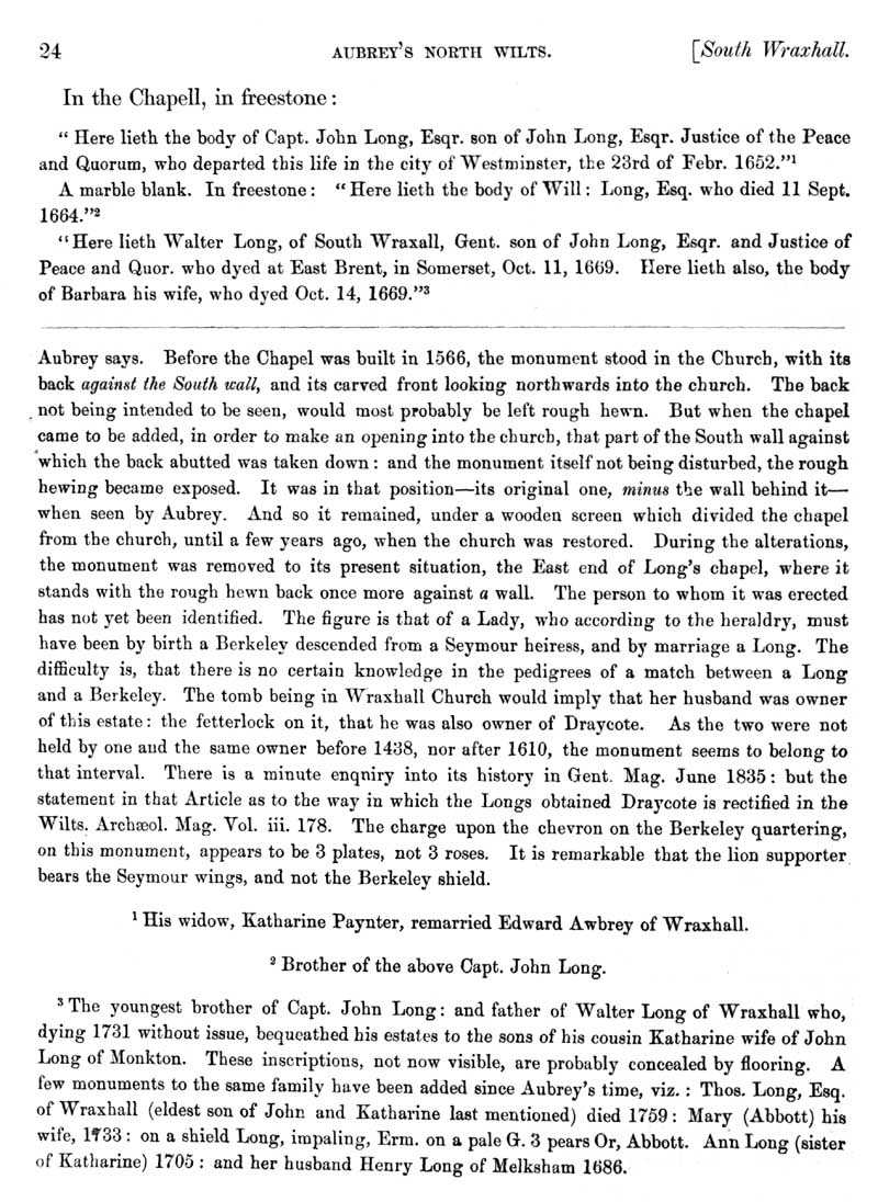 Page 6 History of South Wraxall, the church, monumental inscriptions of the Long family.