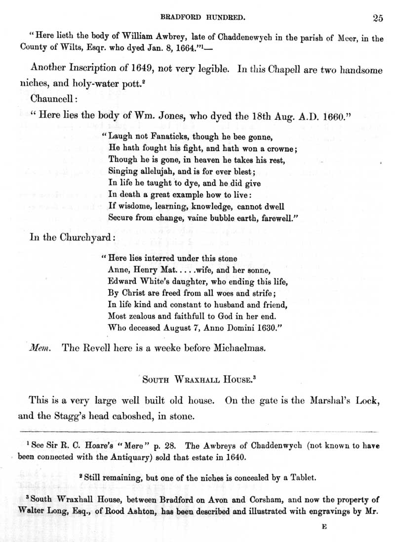 Page 7 History of South Wraxall, the church, monumental inscriptions, South Wraxall House.