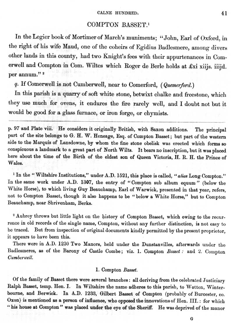 Page 12 History of Cherhill. History of Compton Bassett.