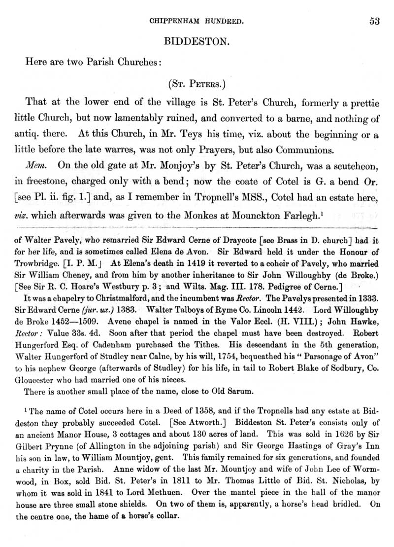 Page 8 History of the hamlet of Avon (Bremhill). History of Biddestone, church of St. Peter.