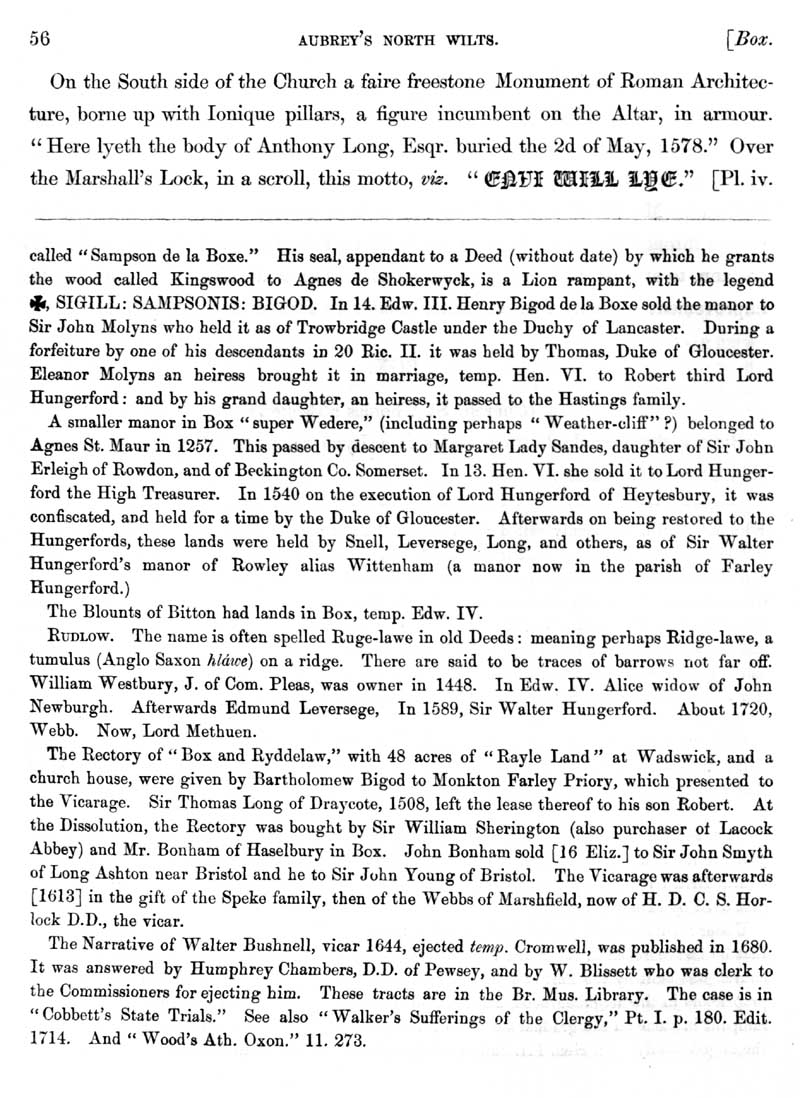 Page 11 History of Box; Ditteridge, Rudloe, church, monumental inscriptions.