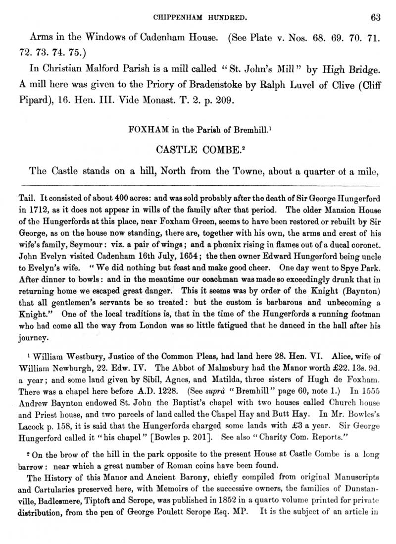 Page 18 History of Bremhill; Cadenham, Foxham. History of Castle Combe.