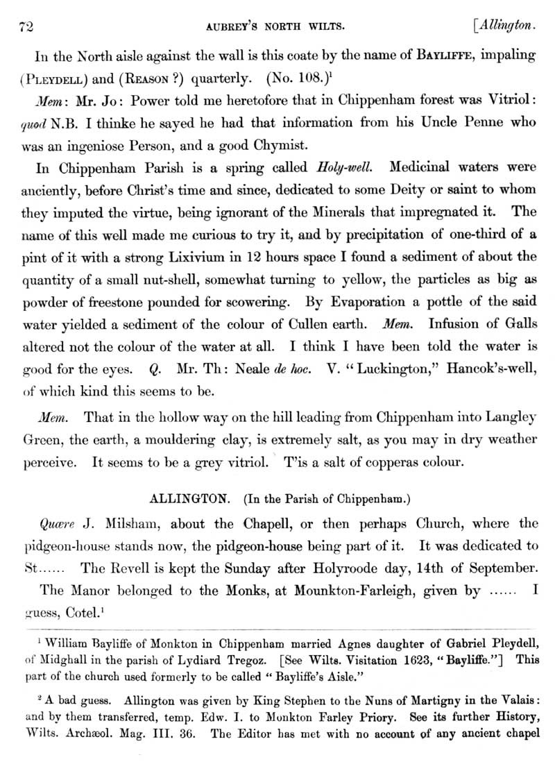 Page 27 History of Chippenham, the church, Holywell, Allington.