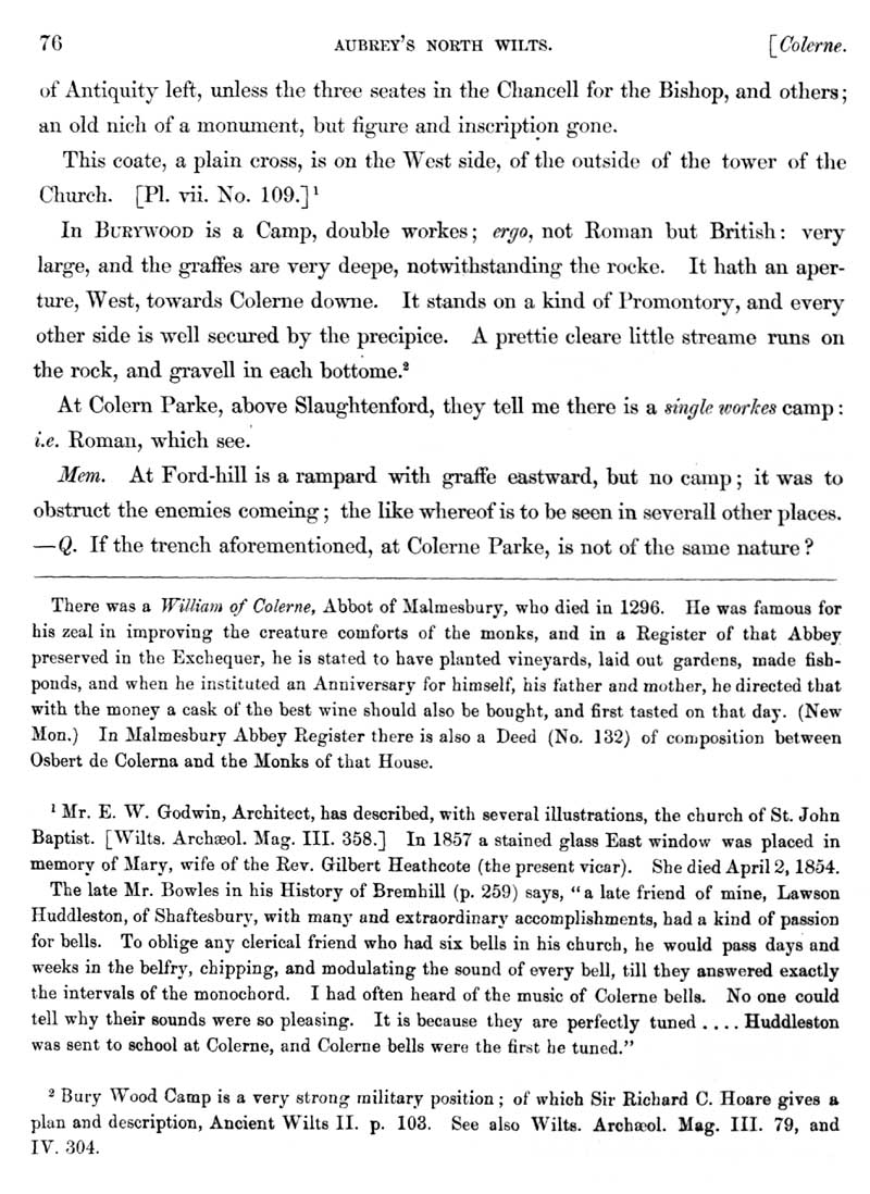 Page 31 History of Colerne; church, Bury Wood Camp, Ford.