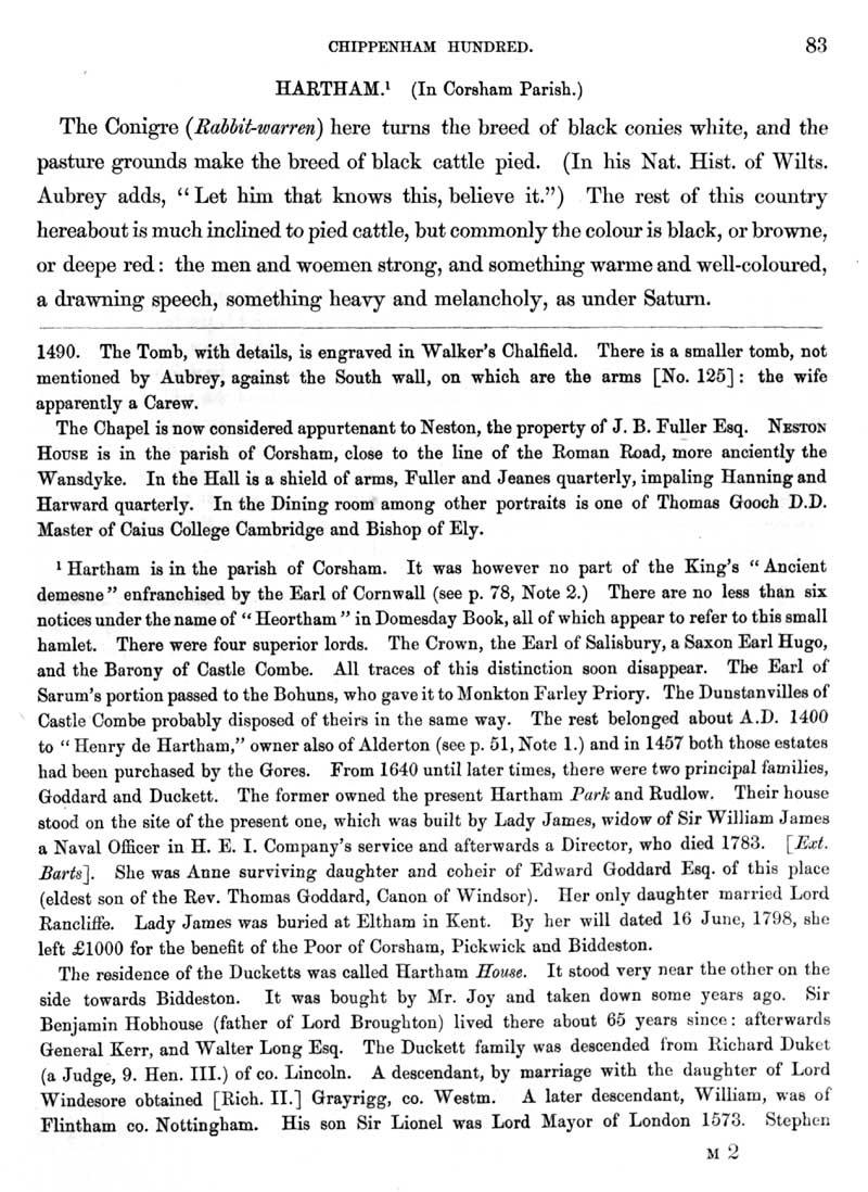 Page 38 History of Corsham; church, monumental inscriptions and heraldry, Hartham.