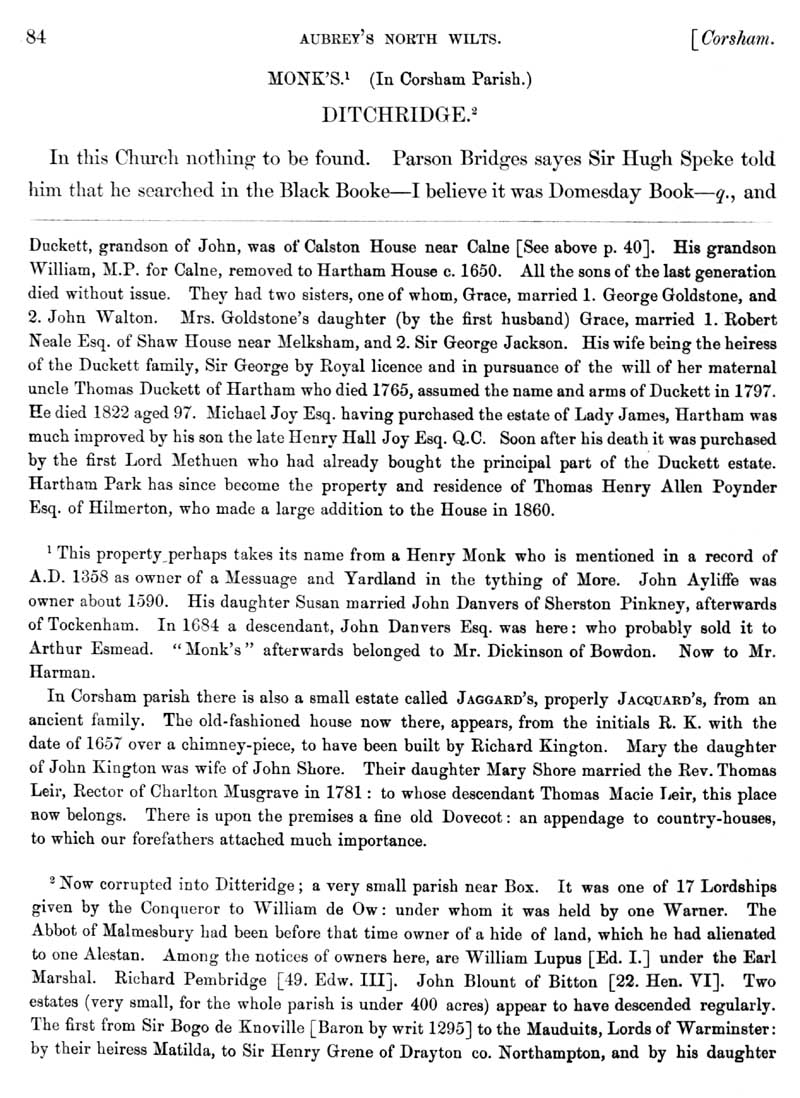Page 39 History of Corsham; Hartham, Monk's, Jaggard's. History of Ditteridge (Box).