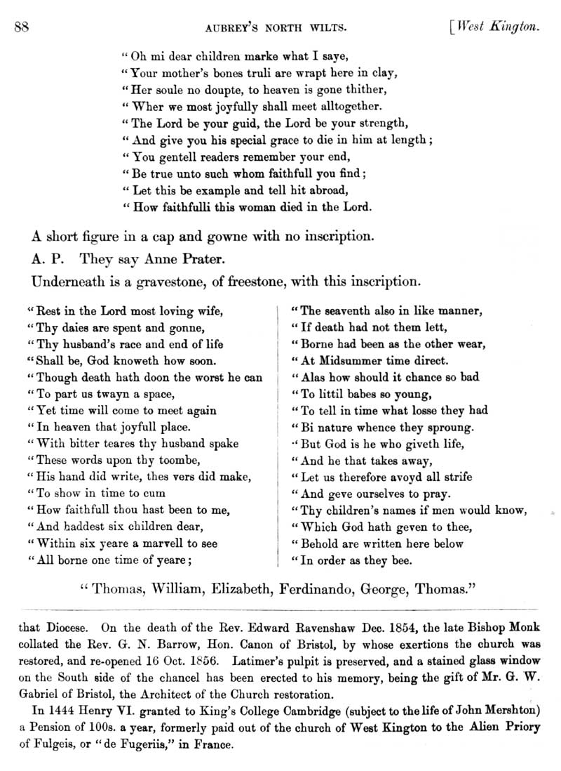 Page 43 History of West Kington (Nettleton); church, monumental inscriptions.