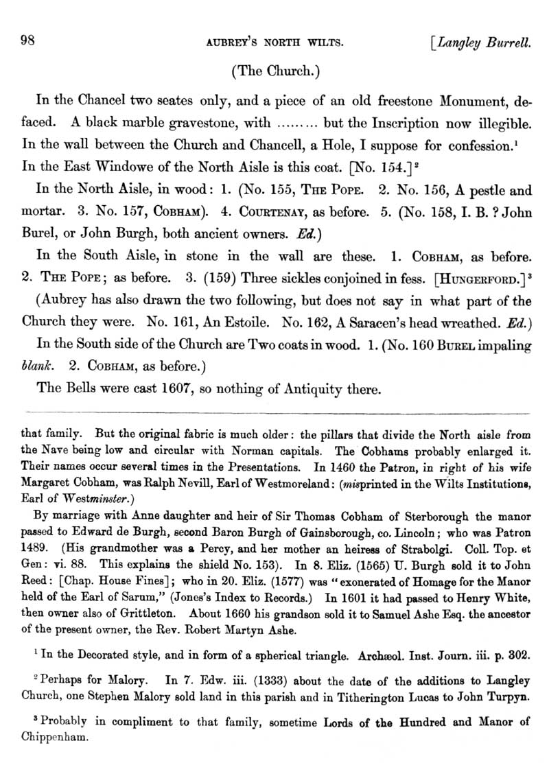 Page 53 History of Langley Burrell; church, descent of manor.