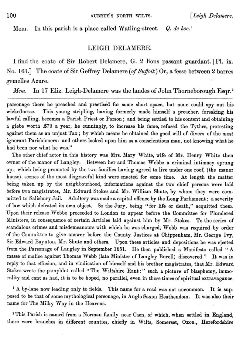 Page 55 History of Langley Burrell; 'The Wiltshire Rant' by Edward Stokes. History of Leigh Delamere.