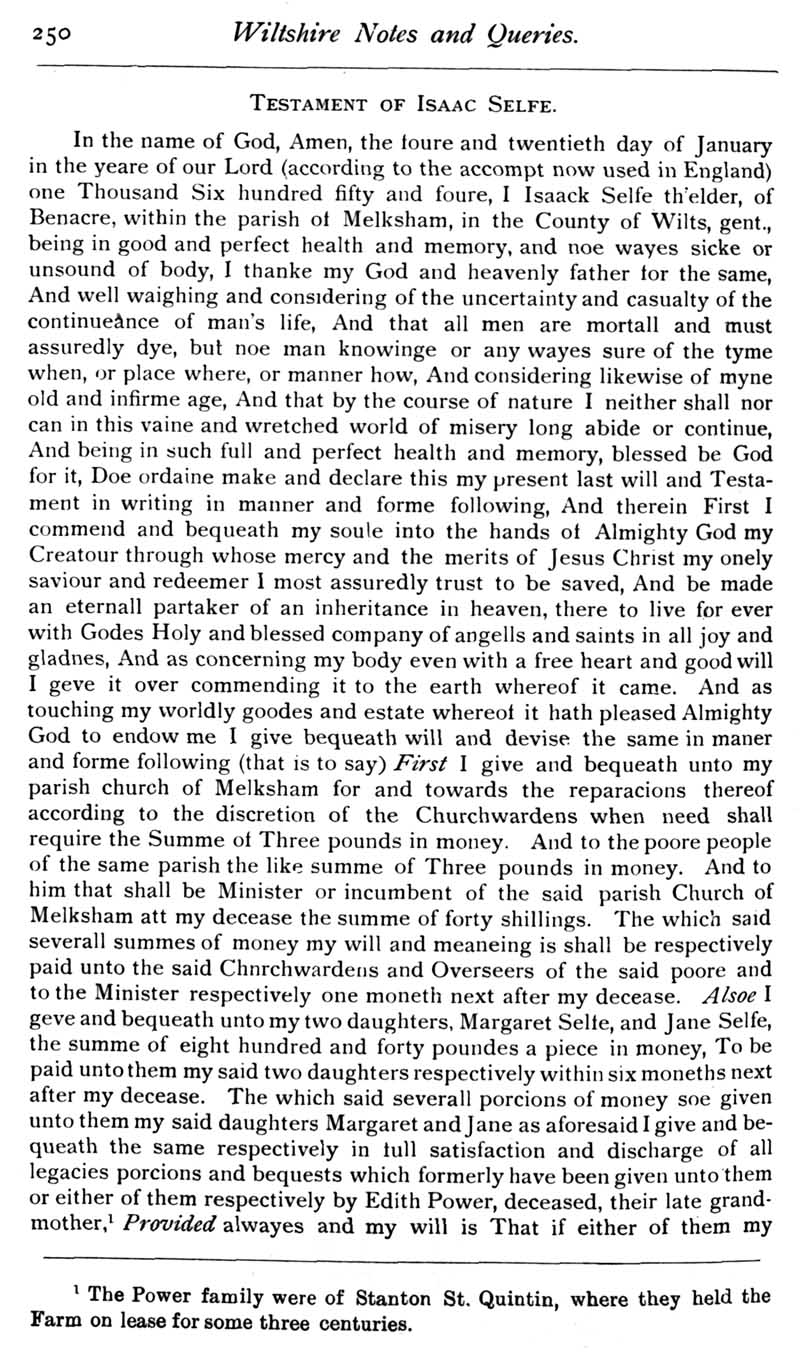Chapter 7 Place House Melksham; Records of Wiltshire Parishes; Quakerism in Wiltshire; Feet of Fines for Wiltshire; Purton; Melksham 'City'; Arms in Westwood Church; Adam Goldney to george Fox; Wiltshire Briefs; Miscellanea; Queries; Replies; Notes on Books.