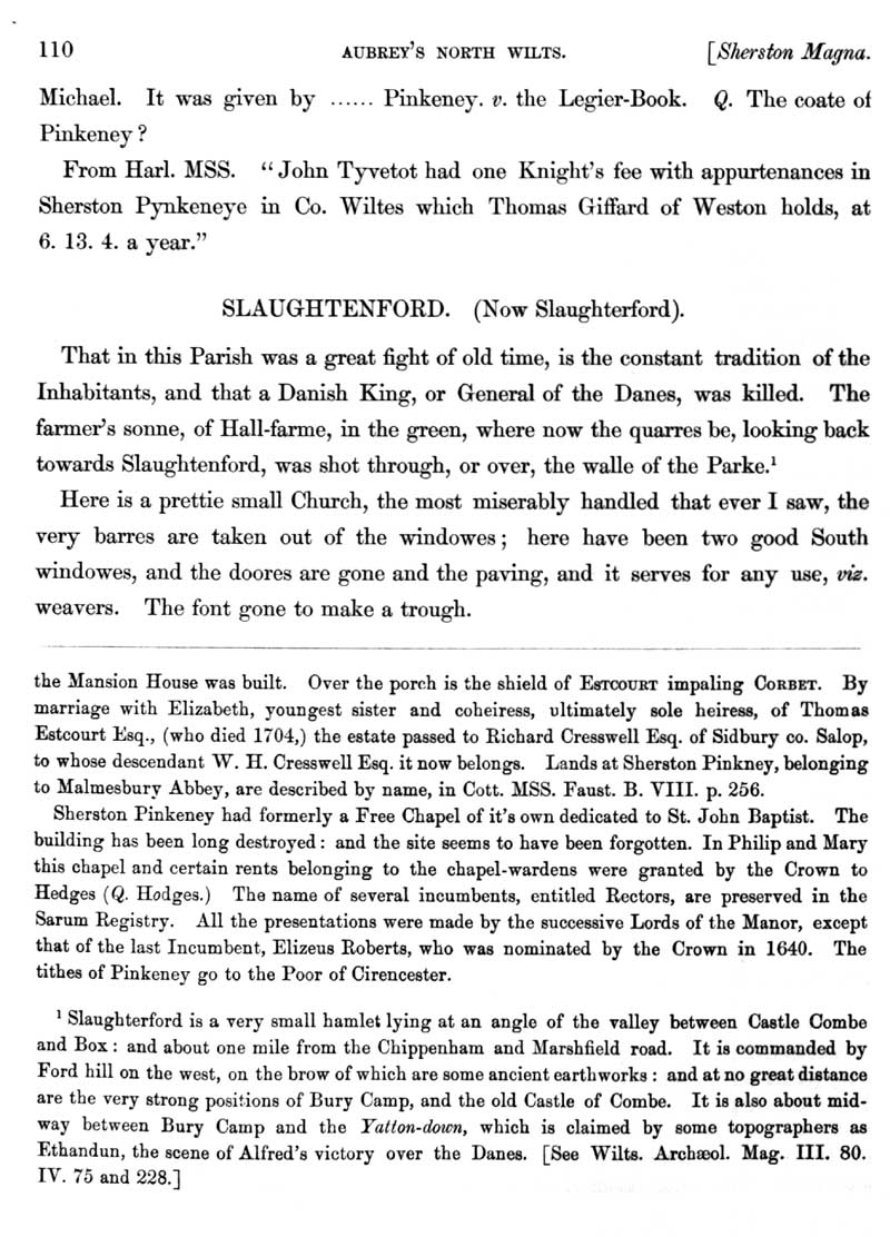 Page 65 History of Sherston; Pinkney. History of Slaughterford (Biddestone), church.