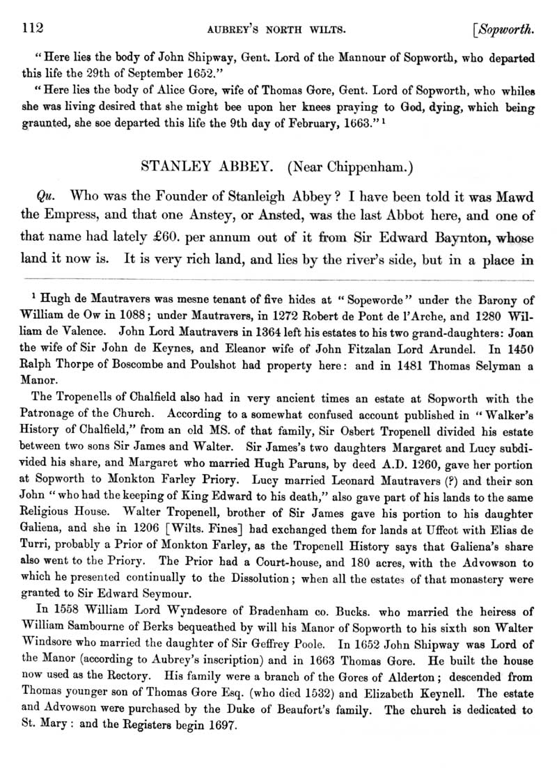 Page 67 History of Sopworth, church, descent of manor. Stanley Abbey (Bremhill).