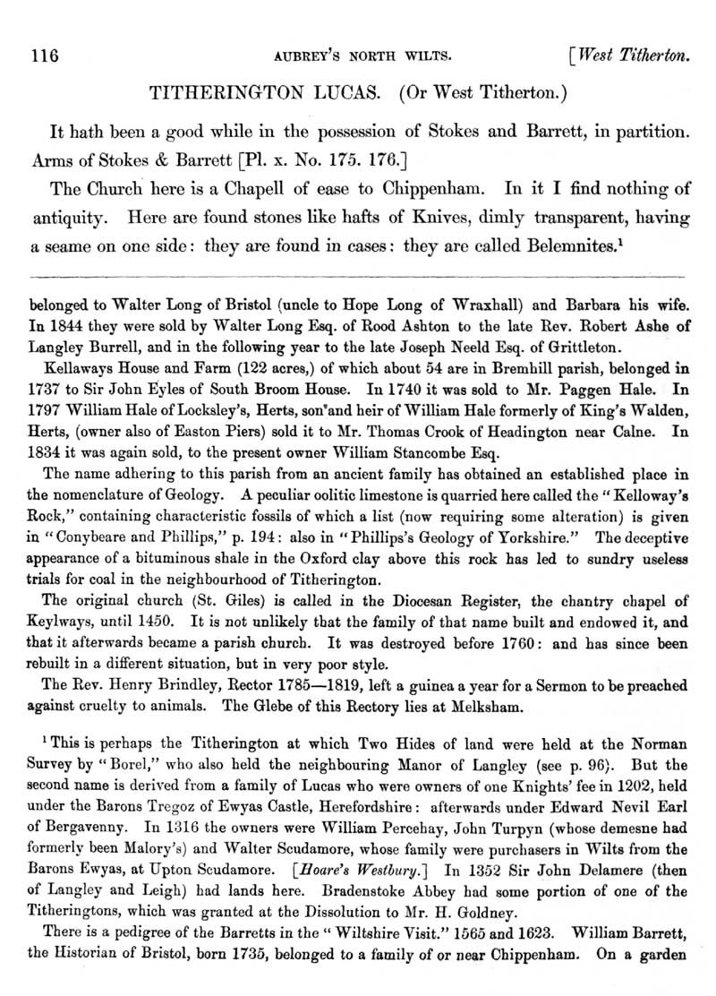 Page 71 History of Tytherton Kellaways, or East Tytherton, (Bremhill); descent of manor. History of Tytherton Lucas, or West Tytherton, (Bremhill); descent of manor.