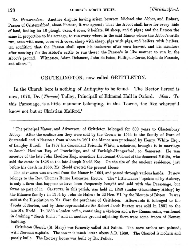 Page 5 History of Christian Malford; Glastonbury Abbey deeds. History of Grittleton; descent of manor, the church.