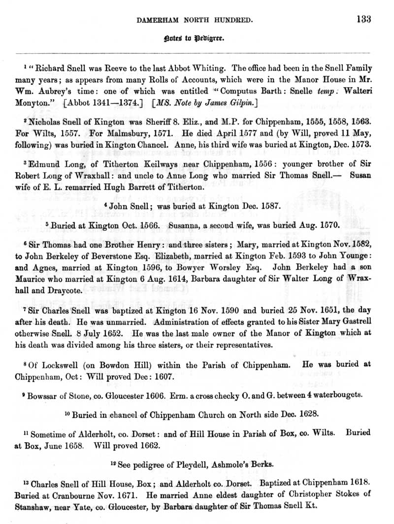 Page 10 History of Kington St. Michael; Snell family.