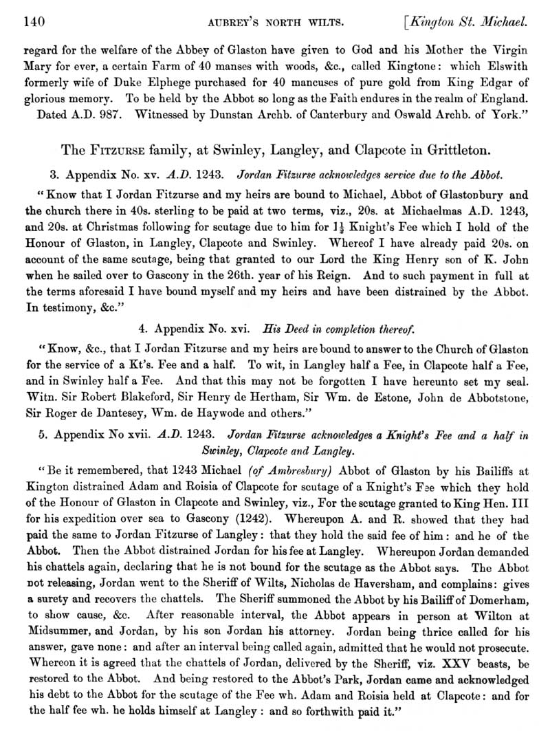 Page 17 History of Kington St. Michael; deeds of the manor, Fitzurse family.